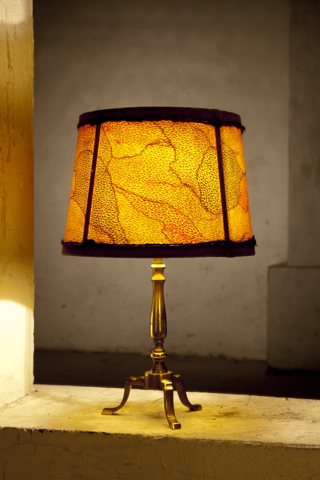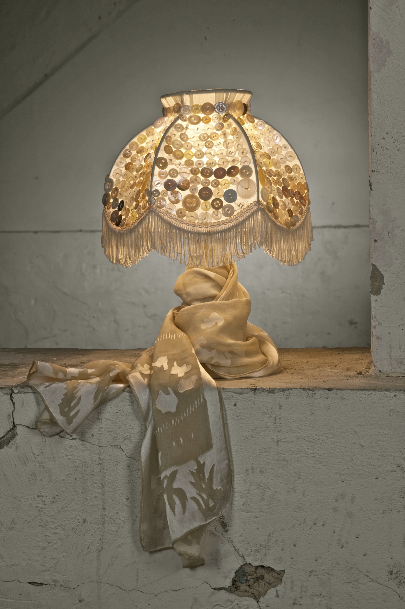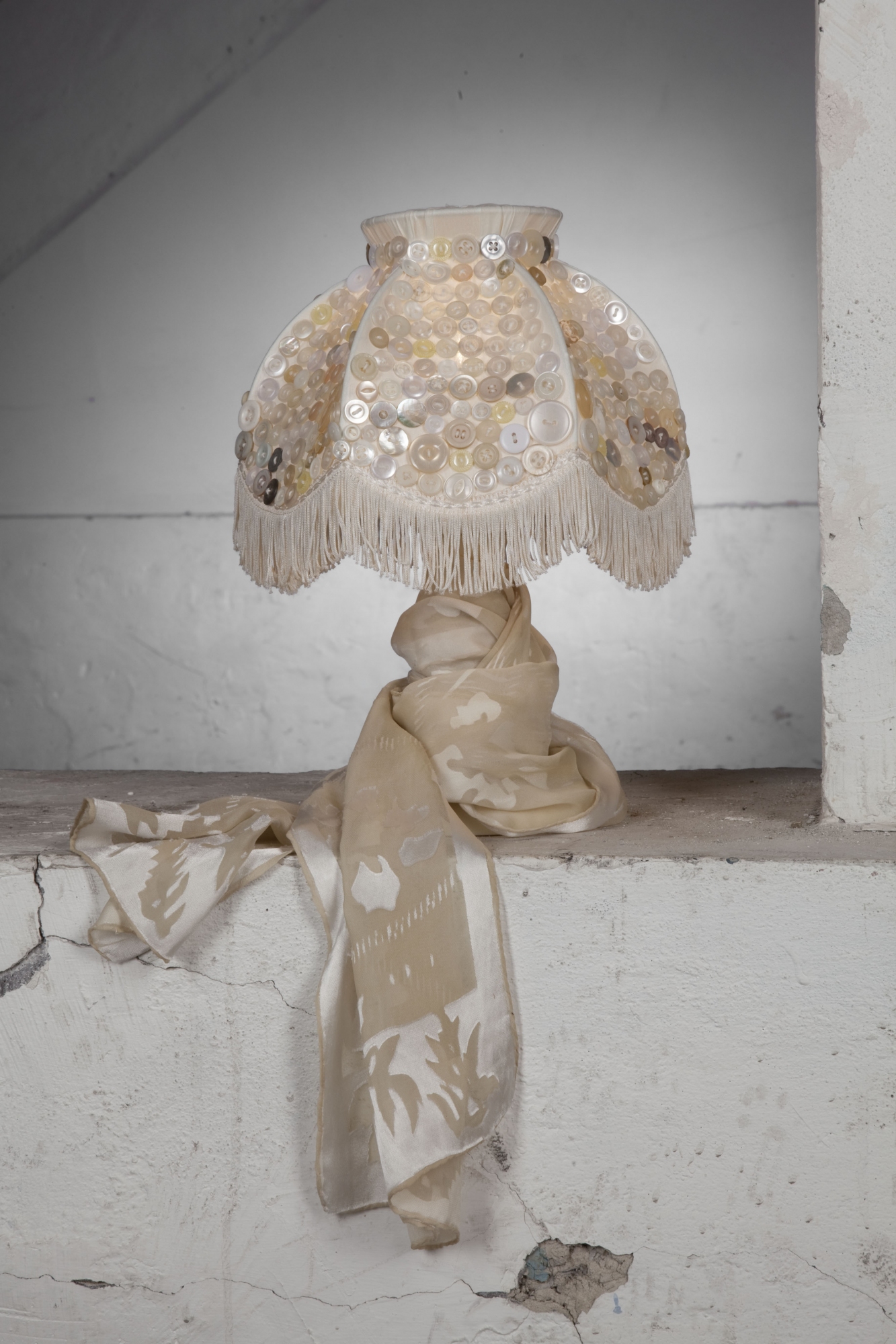 Material: Lampenschirm, Knöpfe, PVC-Fuß, Seidentuch